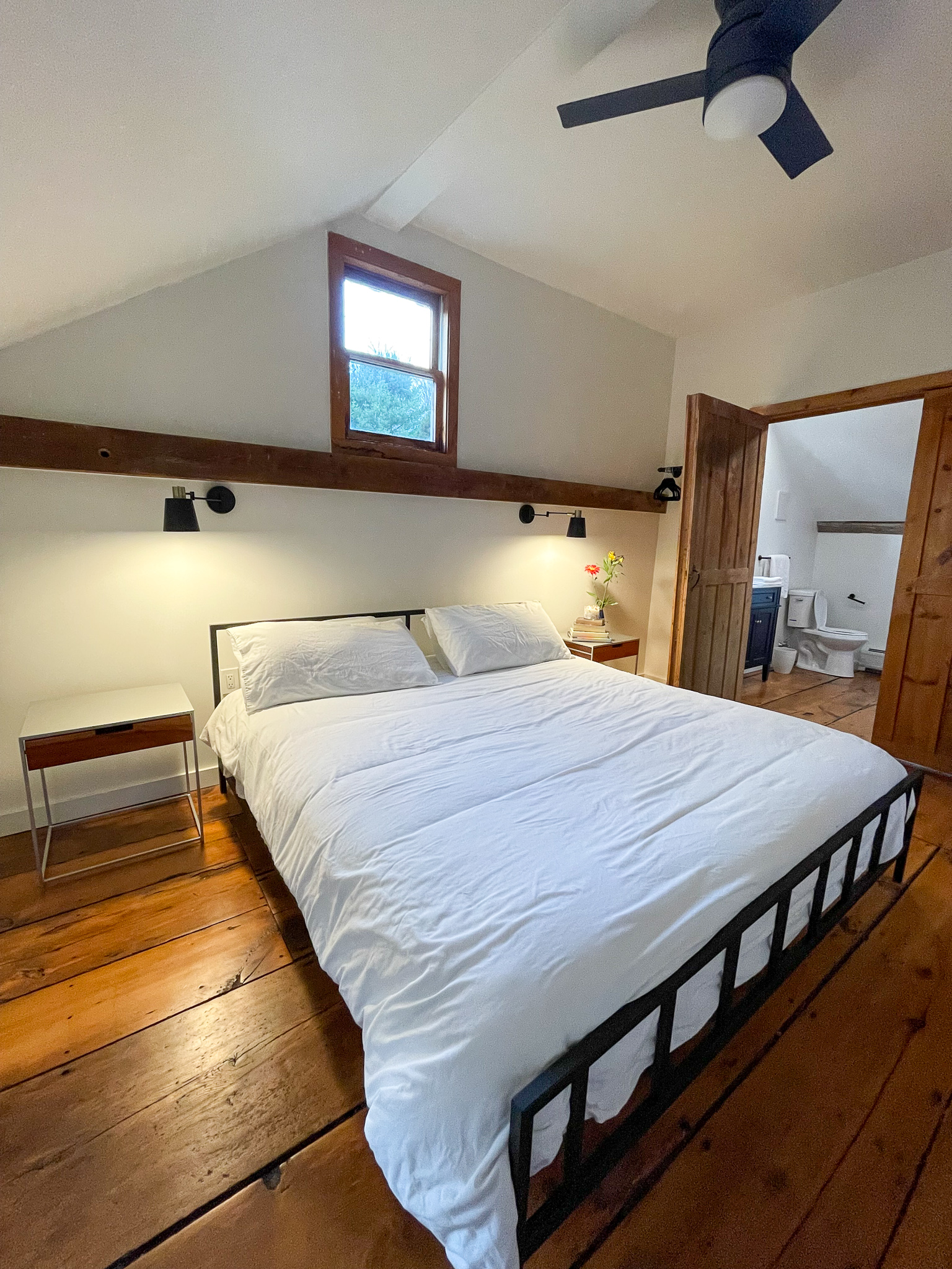 -1BR, 1BA, pet friendly! 1790’s farmhouse property with newly finished wood floors, really the whole place has been completely updated while maintaining the original character of the structure. The property has lots of room for the dogs to roam and stretch their legs in the morning along with a stream and little bridge outside.