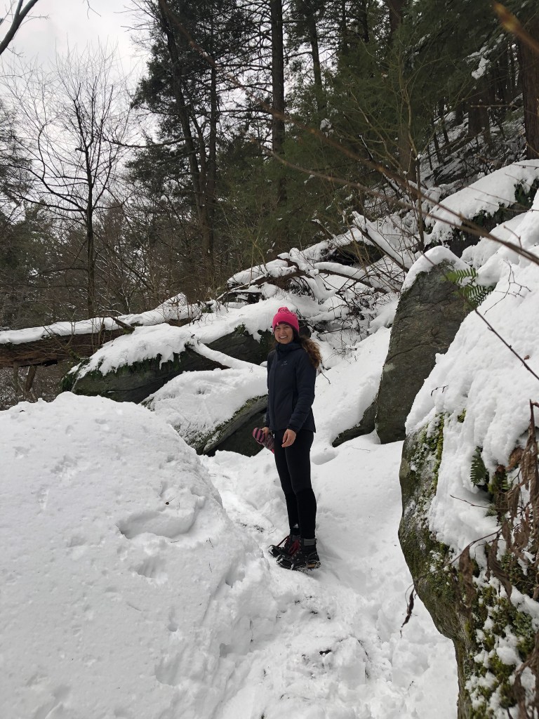 Snowshoes or microspikes? Who’s going to win?! Winter will be here before we know it, does that mean you need to run out and spend over $100 on snowshoes before you can hit the trails? It depends on the conditions. Snowshoes are not necessary to hike in the winter unless you are going to be hiking in higher elevations (think Catskills or NH) through several inches of fresh snow. Let’s review and compare snowshoes and microspikes and talk about when you will need each one. (To see which ones I use click here.)
